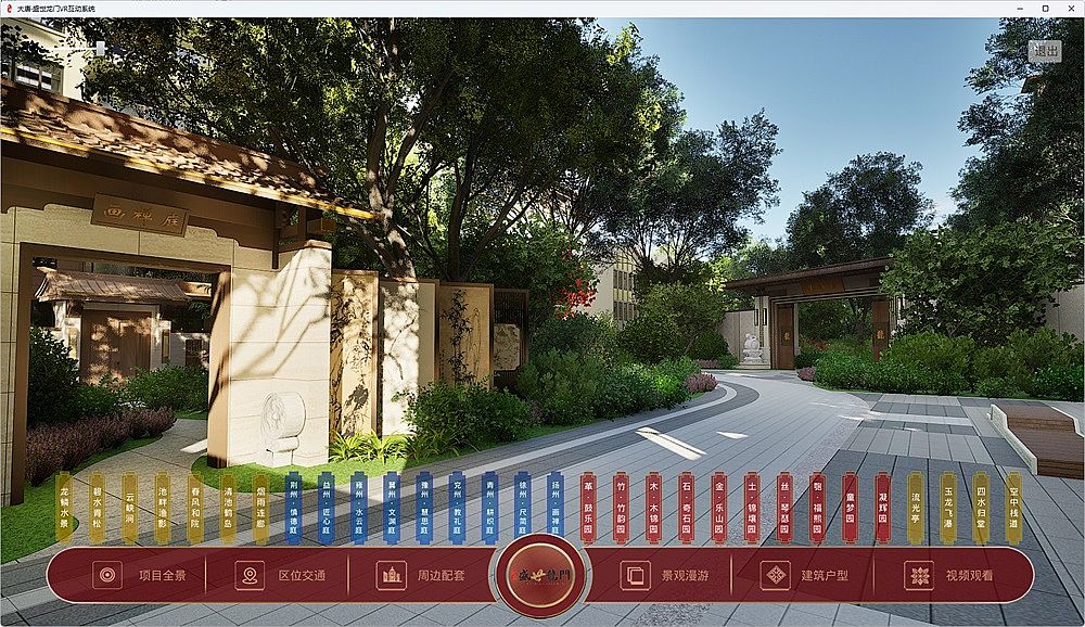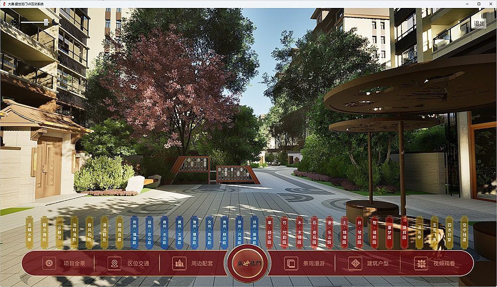 VR互動展示系統(tǒng),使用UE引擎,全方位呈現(xiàn)整個小區(qū)的各個景觀節(jié)點,全景交互,可自由行走游覽。